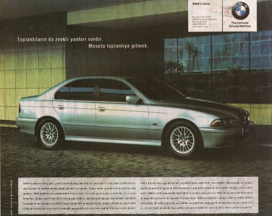 Toplantılara giderken güzel yanlarından biri BMW 5 serisi ile gitmek. Her sıkıcı davetin güzel bir yönü vardır : BMW 5 serisi ile eve dönmek gibi .