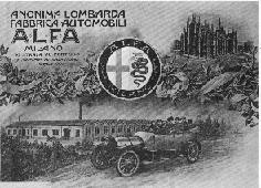 Gerçekte Alfa’nın hikayesi Alexandre Darracq ile başlar. Darracq modelleri piyasadayken 1909 yılında şirket iflas etmiş. 1910 yılında ise Lombardia (Milano) bölgesi finansörleri şirkete ortak olmuş böylece şirketin ve modellerin yeni adı “A.L.F.A “ ortaya çıkmıştır. Yandaki ilan 1910 yılında “ALFA olarak verilmiş ilk ilandır. Fakat savaş şirketi krize sürüklemiş Daha sonra şirket 1915 yılında Romeo adlı bir mühendisin kontrolüne geçmiş 1918 yılına kadar savaş malzemeleri üreten bir onumdayken 1918 yılında aslı işlevi otomobil üretimine geri dönmüş ve Alfa Romeo otomobiller artık yollardadır |