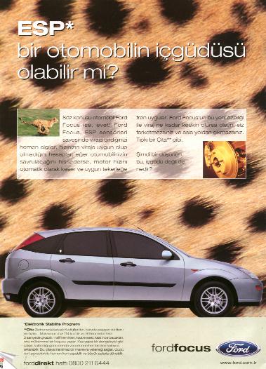Bugünlerde yazılı ve görsel basında devam eden Ford Focus reklam kampanyasında , hayvanlar aleminden çita'nın refleksleri otomobilin karakteristikleri ile özleştirmekte.
