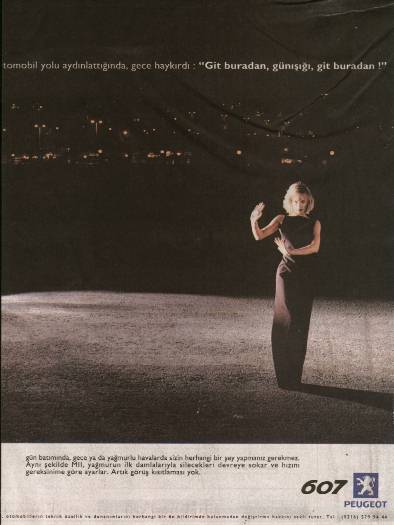 Peugeot'un 607 modeli için hazırladığı global kampanyası Türkiye'de de başladı. Fransız *Euro RSCG reklam ajansının bu çalışması Türkiye de Klan *Euro RSCG tarafında yürütülmekte.