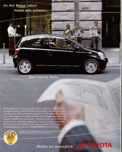 standartlarını Yaris için uyguluyor. Reklam kampanyaları da